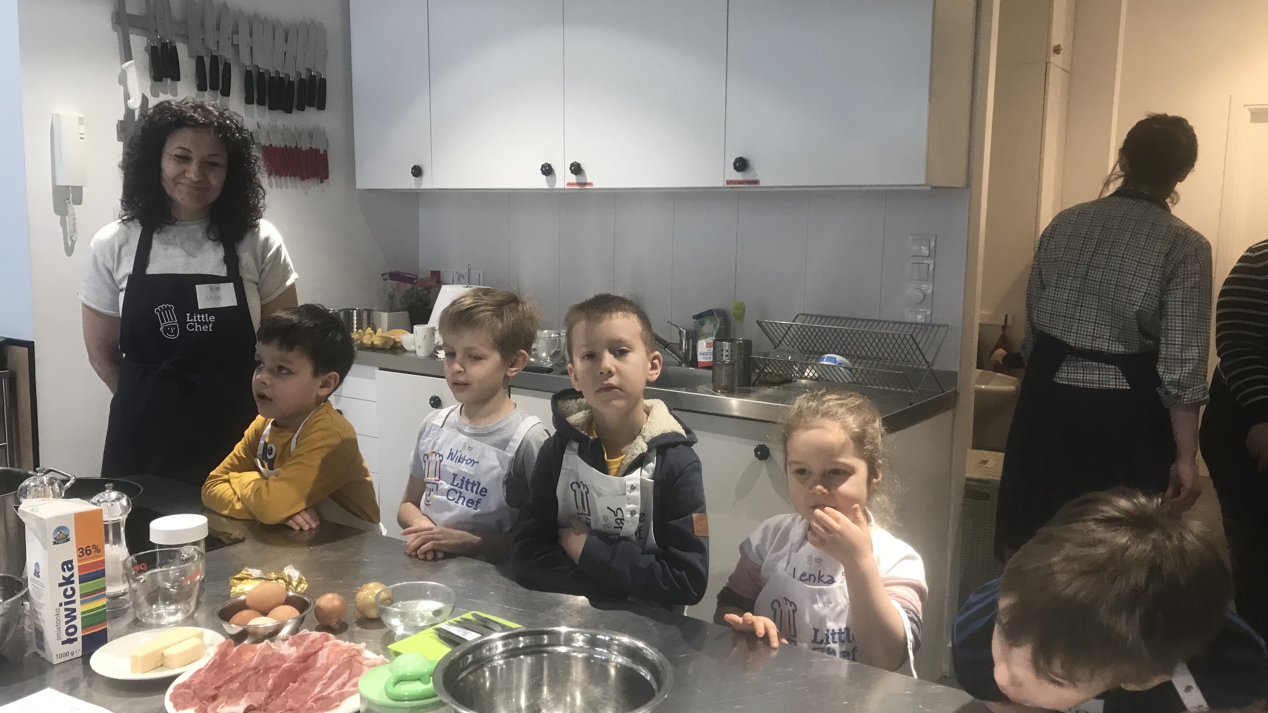 “Mamo, dziś się nie martw, ja zrobię obiad” powiedział Staś w sobotni poranek. Spokojnie, to nie jest codzienny u nas tekst 🙂 Staśka do takiej deklaracji zmotywowały zajęcia w szkole gotowania dla dzieci Little Chef. Gdy go odwoziłam, powiedział jeszcze „Mamo, nie zostawaj proszę ze mną,nie patrz jak dzieci gotują, bo to będzie musiała być niespodzianka”. Gdy wróciłam po niego po godzinie z kawałkiem, Stasiek właśnie siadał do przygotowanego przez siebie makaronu (zajęcia były pod hasłem kuchnia rzymska) i powiedział nieco zmieniając wcześniejsze deklaracje:„No, to ja obiad mam na dziś z głowy. A wy co będziecie jedli?”. Zapytałam, co z tym faktem, że on miał nam gotować. I usłyszałam, że przecież nie będzie jednego dnia jadł dwóch – i to w dodatku takich samych – obiadów. Cóż… trochę go rozumiem, liczę, że ugotuje nam rzymski makaron w przyszłości. I jeszcze tylko usłyszałam „Zapisz mnie proszę na wszystkie lekcje, które tu są”. Za tydzień idzie na zawijańce – gołąbki i krokiety. Gołąbków Staś nie lubi, więc jestem bardzo ciekawa co zrobi z tymi samodzielnie przygotowanymi!