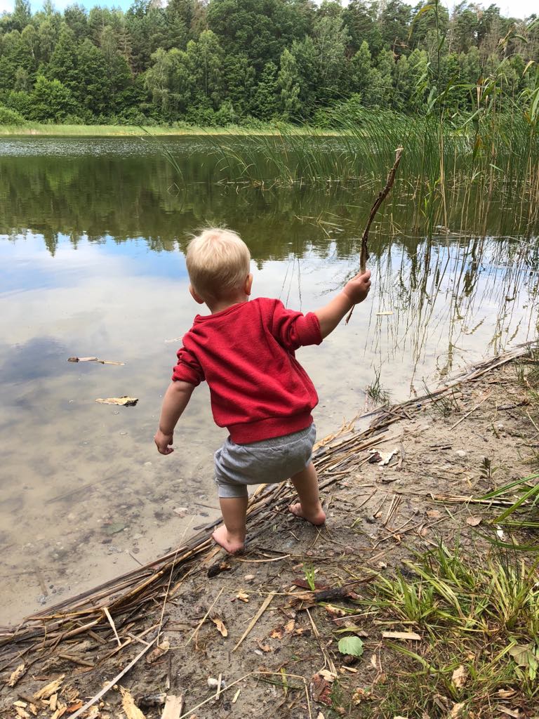 Budowanie bazy przykrytej gałęziami, zjeżdżanie na pupach po hałdach piasku – i dopowiadanie sobie codziennie innej historii do tego gdzie się właśnie znajdujemy, czy chociażby zbieranie chrustu i wielogodzinne palenie ogniska to o wiele ciekawsze zajęcia. Kulanie się z górki na dół, rzucanie kamieni i patyków do wody i obserwowanie co się z nimi dzieje. Podchody. Tresowanie psa. Malowanie kamieni. A potem tworzenie z nich teatru, robienie dekoracji, układanie w kolejności jak kart w grze Dixit. Pomysł się nie kończą. Pod zdjęciami na moim instagramie z takich właśnie wakacji dostawałam dziesiątki komentarzy z podobnymi zabawami. Zapadło mi w pamięć robienie mielonych z błota. Ja robiłam sklepik, zbierałam bukiety, robiłam babki z piasku.