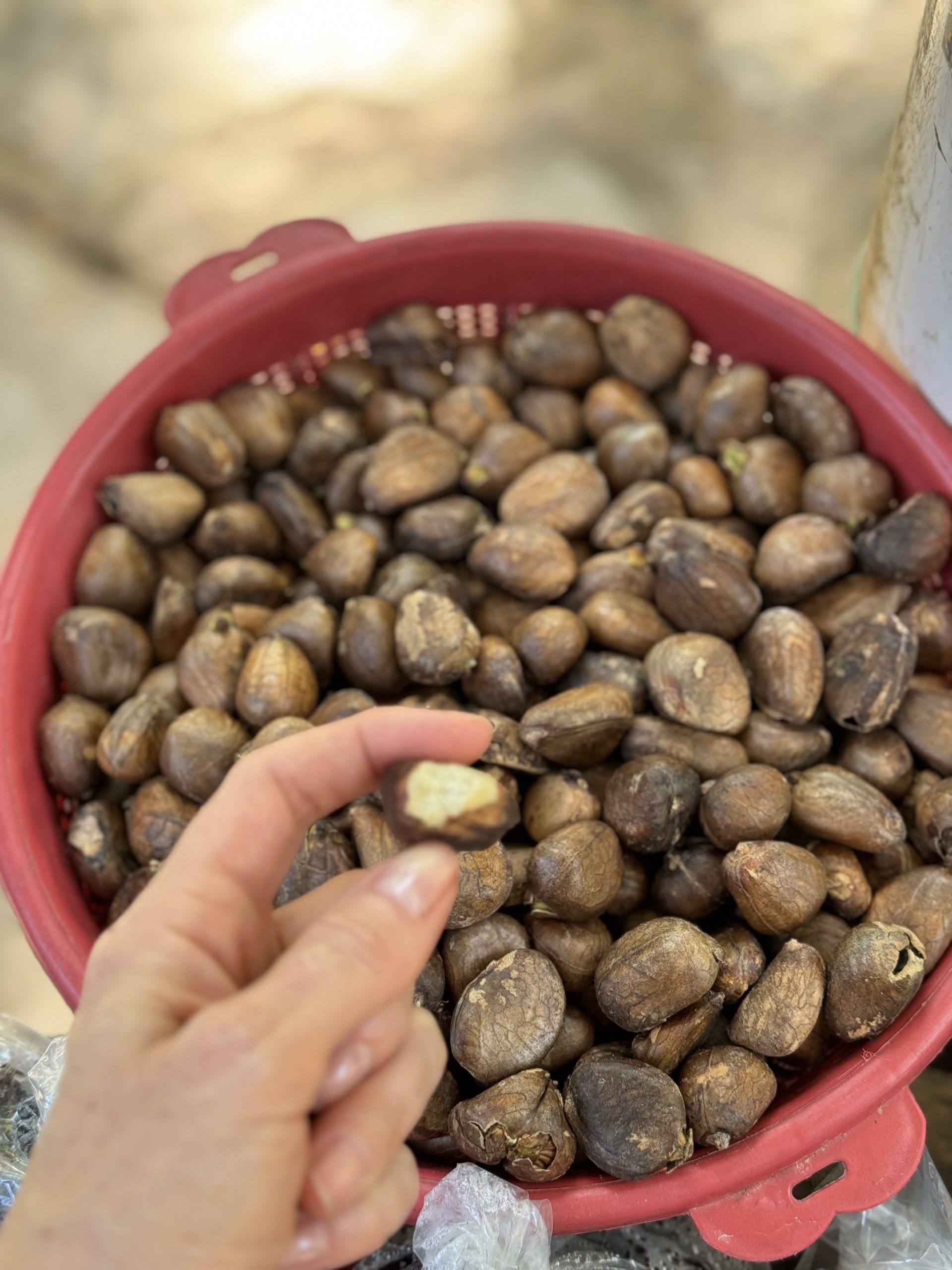 Czasami wymaga to pewnej odwagi (w San cristobar de la casa można kupić robaki – jeszcze ta zabawa przede mną), ale zatrzymujemy się przy drodze, jemy i pijemy ( świeży sok z kokosa, mango ze straganu nie są tak ryzykowne, jak kakao w plastikowej butelce, ale i smak mają mniej tajemniczy). Popularne tu są także tamales pieczone na ulicy – taka kukurydziana papka z fasolą zawinięta w liście bananowca – średnio mi to smakuje, szczerze mówiąc. Do wszystkiego są dodawane ostre salsy. Dla mnie, miłośniczki chipsów, to raj – tacosy dostajemy w każdej knajpeczce. No i guacamole – jemy je non stop! Ja nie jem mięsa, więc nie próbuję go i w lokalnych barach, ale Stacho je i żyje.