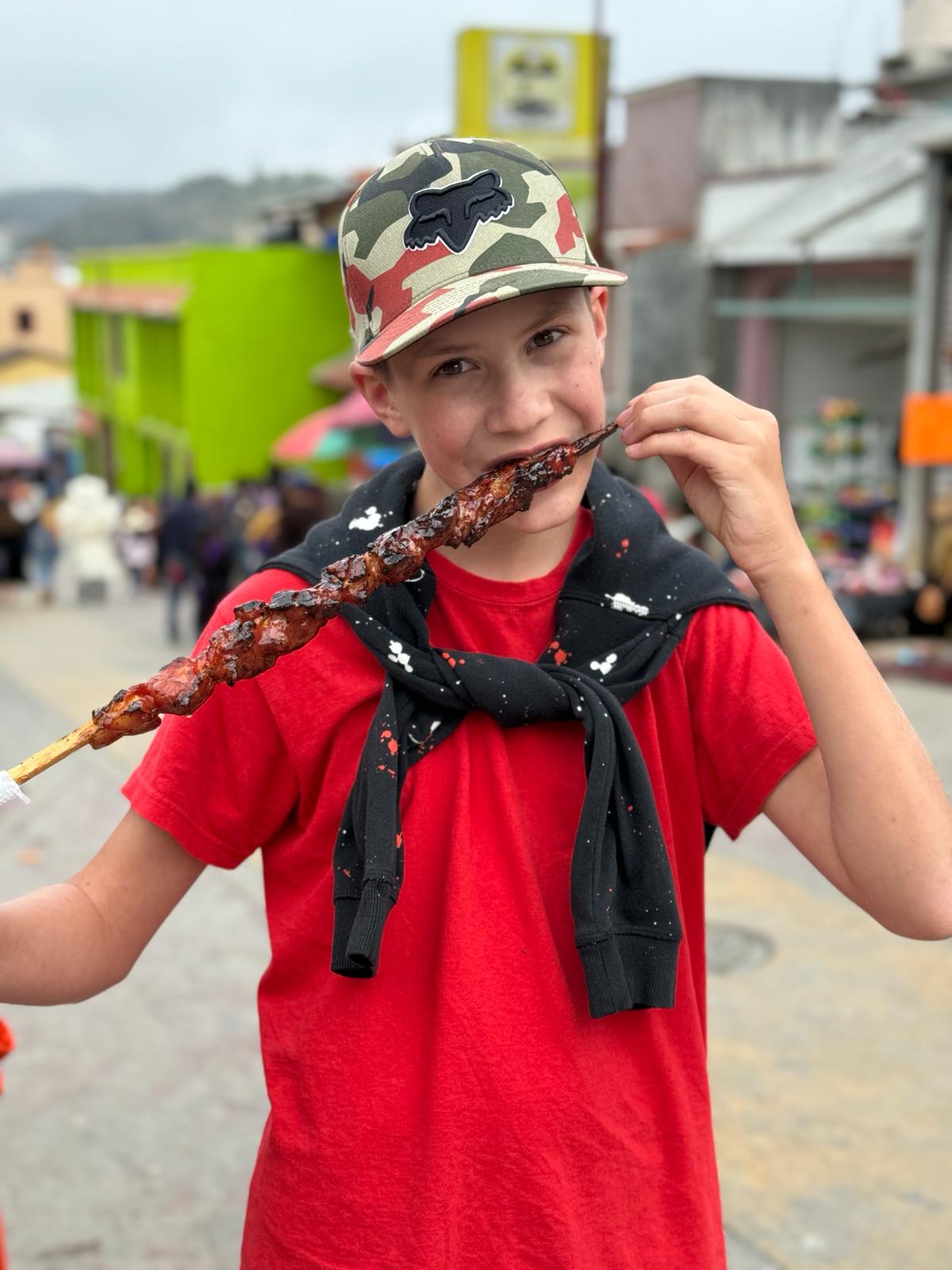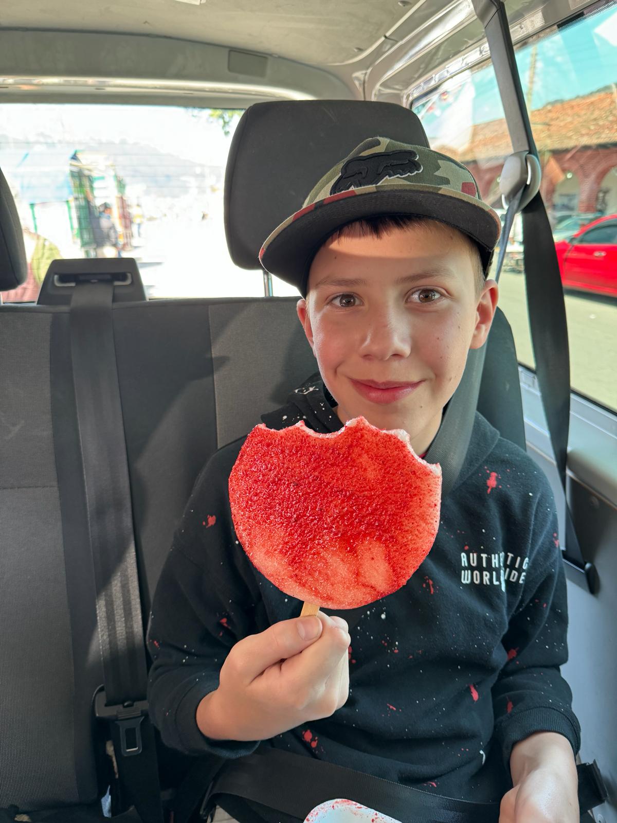 Bardzo dużo było w Meksyku przeróżnych słodyczy – churrosów z różnymi sosami, tortów (zwanych tres laches cake – bo portas z kolei to nasze kanapki) oraz dulce – np. warzyw gotowanych w cukrze. Poziom słodkości tamtejszych potrwa był dla nas trudno akceptowalny. Nawet kakao (podawane z cynamonem, odrobiną chilli) było dla chłopców za słodkie. Nie wspomnę o powszechnych smakowych wodach z dodatkiem cukru, napojach gazowanych czy nawet sokach, które były dosładzane. I “domowych” lemoniadach, które chłopcy zamawiali z butelką wody, aby je rozcieńczyć.