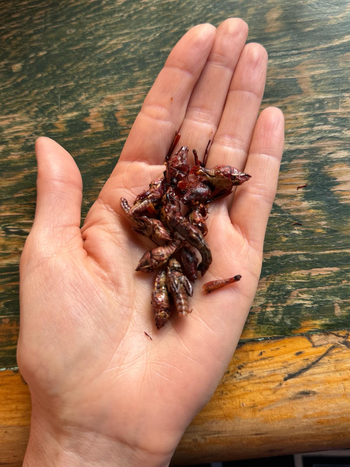 Dla dorosłych natomiast do picia proponowano przeróżne mezcale i tequile (wolę te drugie, mezcale są za intensywne dla mnie, szczególnie podawane z wędzoną solą i sproszkowanymi robakami). Co przypomniało mi, że dość popularne są jadalne owady. Nawet na ulicy można było kupić z wiadra prażone robaczki, dla mnie zbyt słone (Stasiek powiedział, że smakują jakby, utopili je w sosie sojowym i coś jest w tym stwierdzeniu). Ale już koniki polne w przeróżnych wydaniach były PRZEPYSZNE!